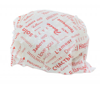 Обертка для гамбургеров Мистерия, 305 x 305 мм, 1000 шт. используется на предприятиях общественного питания, специализирующихся на приготовлении фастфуда. Она незаменима в кафе быстрого питания и заведениях с доставкой еды. Размер обертки позволяет надежно упаковать бургер стандартных размеров. Она защитит готовое изделие от внешних факторов. Такую упаковку обычно не снимают во время еды. Это позволяет рукам оставаться чистыми. При укусе капли соуса будут попадать внутрь, а не на одежу потребителя. Бумага, из которой изготовлена обертка, довольно прочная. Она не пропускает жир. В такой упаковке можно разогревать бургеры в микроволновой печи. У нее привлекательный дизайн. Надписи, сделанные красным шрифтом на белой бумаге, со��ержат приятные пожелания. Они стандартные и подойдут для заведения с любым названием.