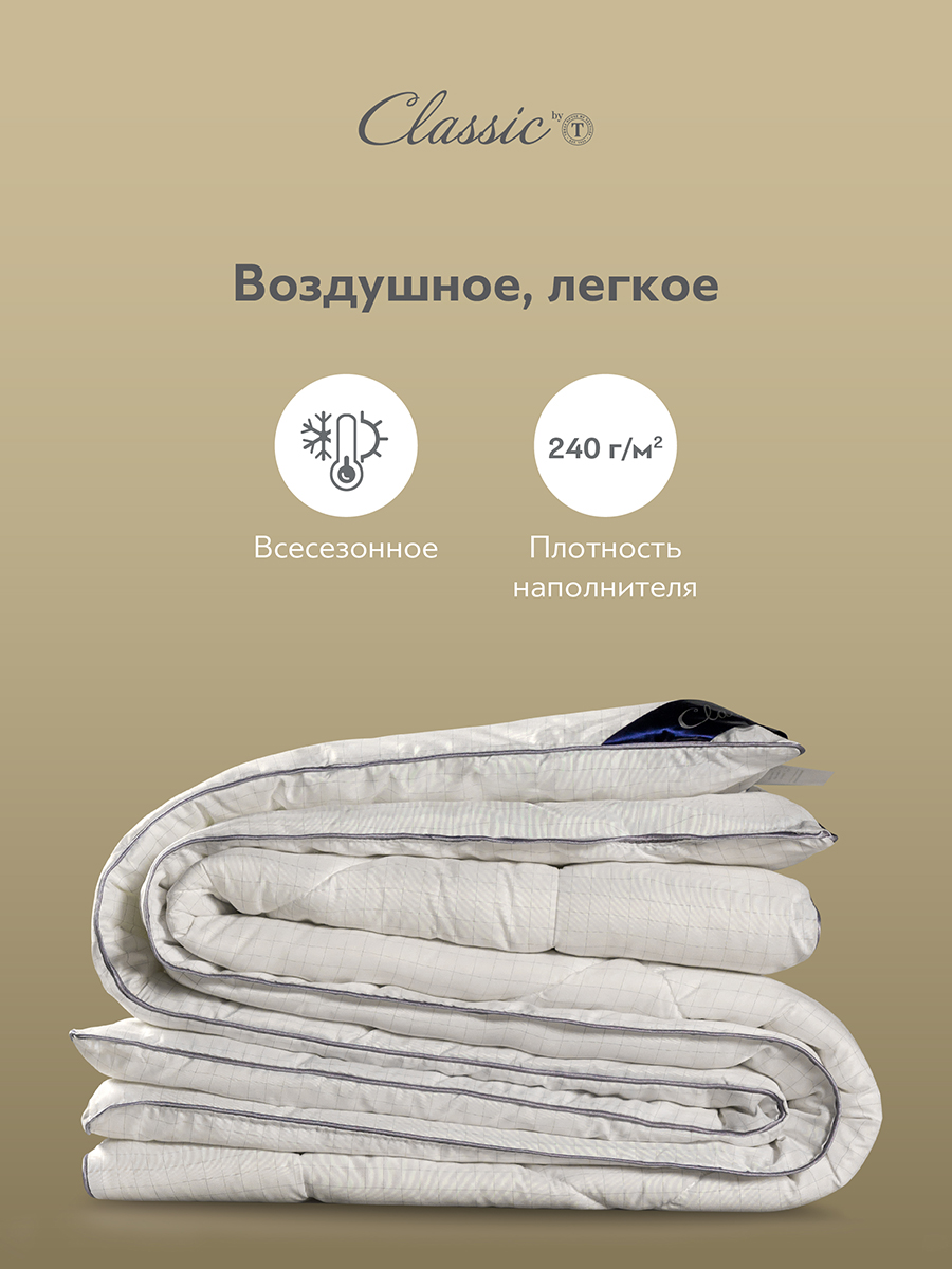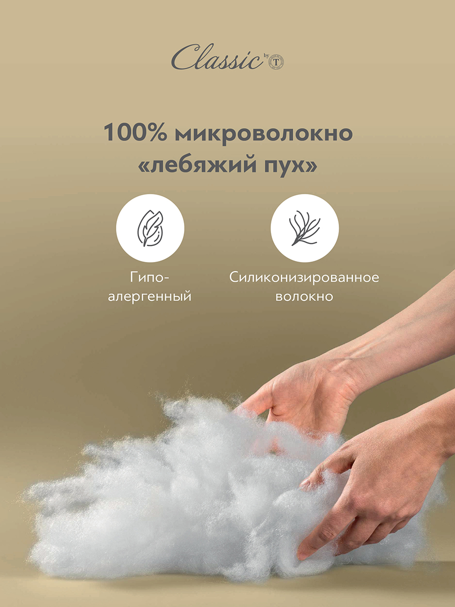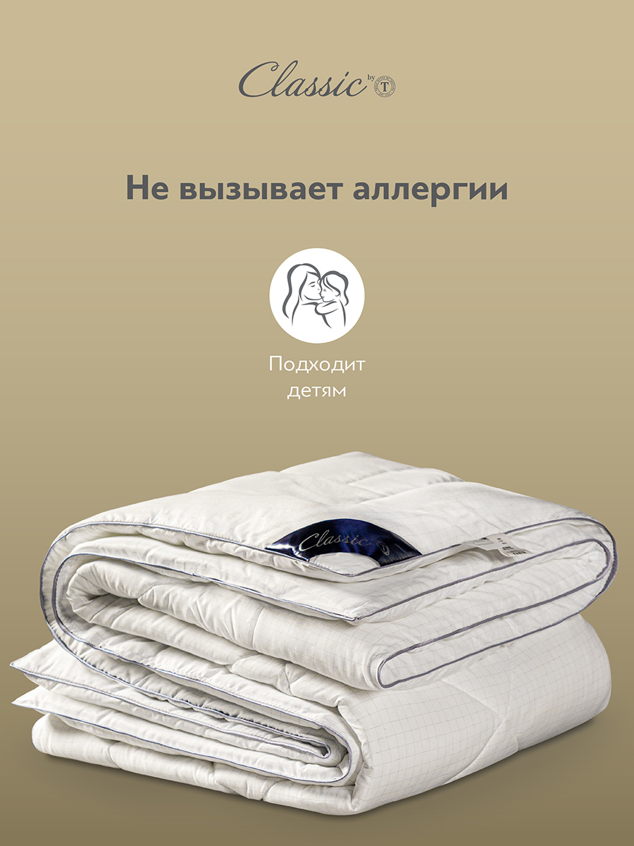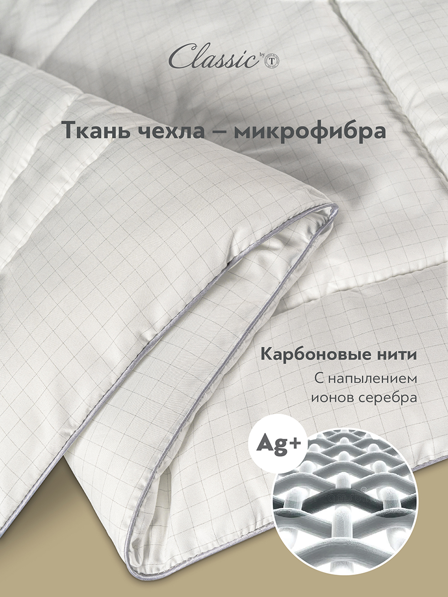 Одеяло Classic by T Антистресс, 200 х 210 см станет вашим надежным спутником в холодные вечера, обеспечивая непревзойденный комфорт и уют. Наполнителем выступает лебяжий пух Ultra Soft — легкий, практичный и долговечный материал. Особенность этой модели — инновационная ткань чехла, в которую вплетены карбоновые нити с напылением из ионов серебра. Молекулы серебра обеспечивают изделию высокую гигиеничность и дополнительную антибактериальную защиту. Мягкие, дышащие и приятные на ощупь компоненты отвечают всем экологическим требованиям и нормам безопасности для здоровья человека. Стеганое одеяло легко стирается в домашних условиях и быстро сохнет. Изделие относится к всесезонным моделям, под ним будет комфортно спать в любое время года.