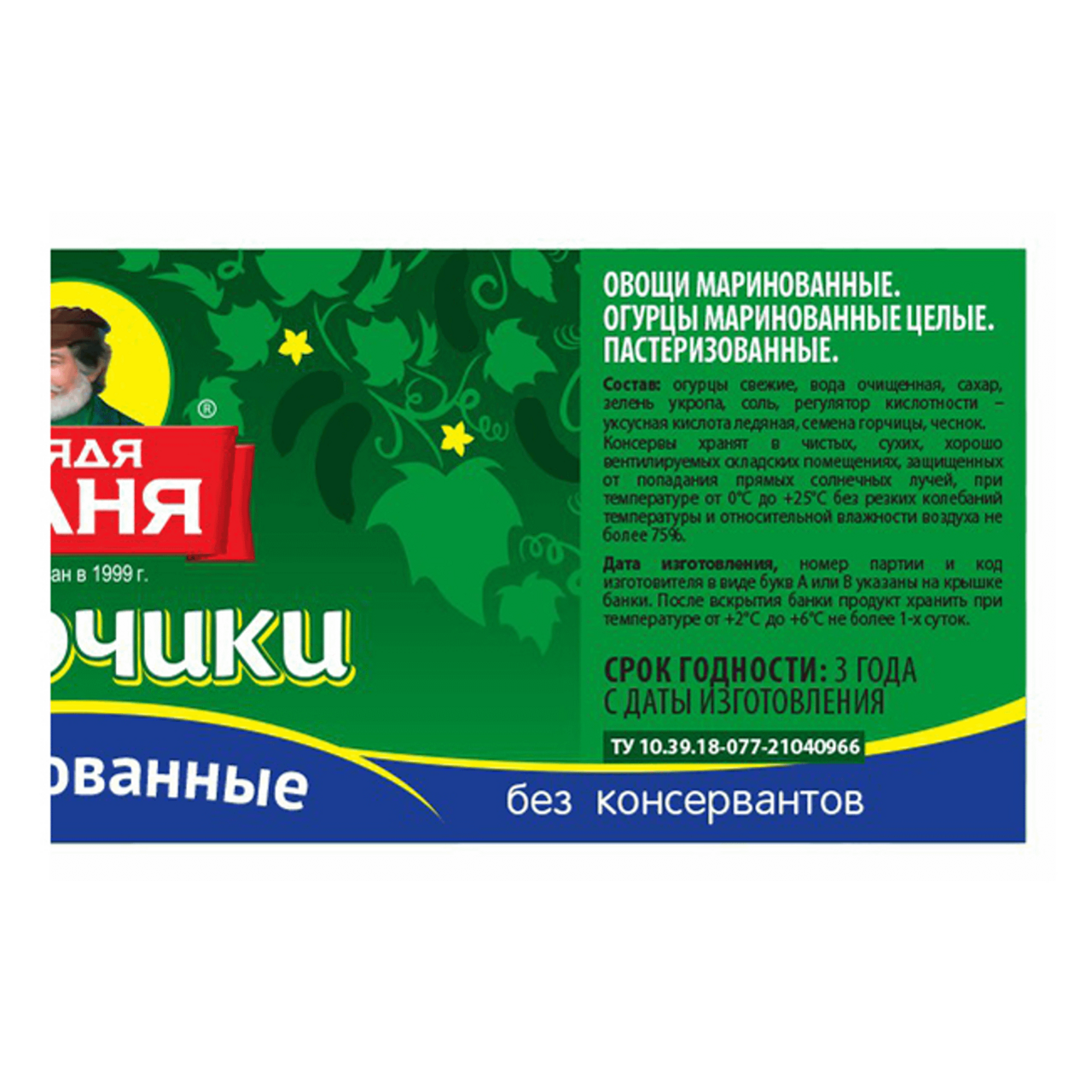 Огурчики маринованные Дядя Ваня – это популярные маринованные огурчики в банке нового объема. Идеальный баланс специй придает продукту изысканный пряный вкус. Это превосходная закуска к мясным и другим горячим блюдам, ингредиент для салатов и соусов.
