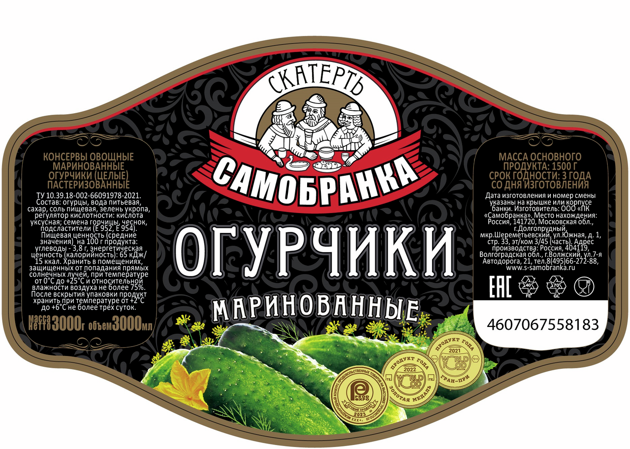 Огурцы маринованные Скатерть-Самобранка, 3л