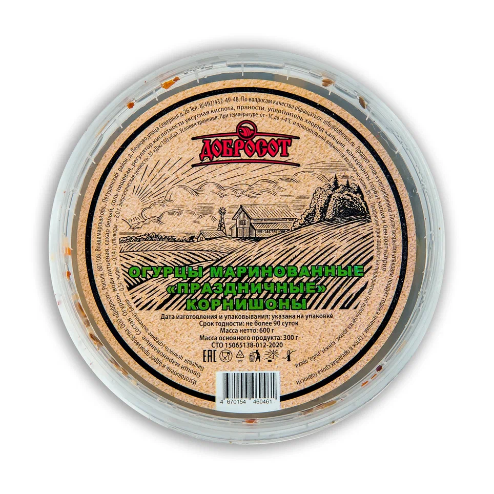 Огурцы Добросот маринованные праздничные корнишоны, 600г