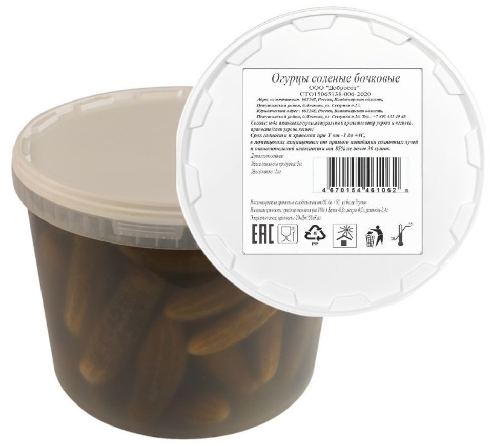 Огурцы Добросот соленые бочковые, 3кг