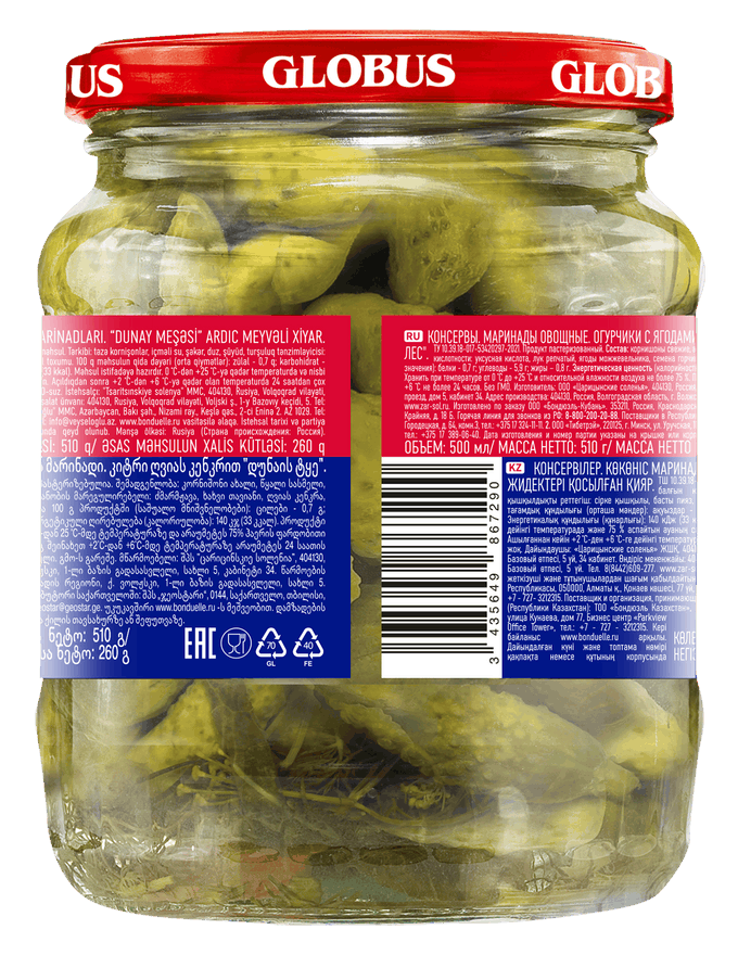 Огурцы Globus Дунайский лес с ягодами можжевельника, 500мл