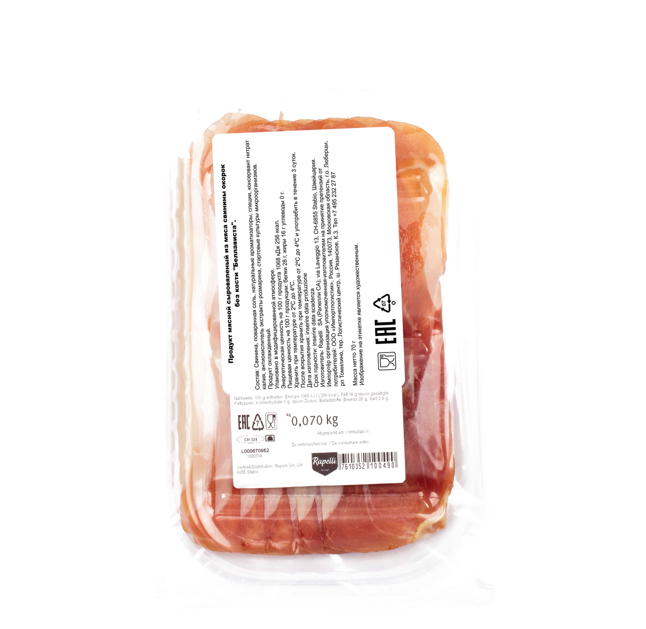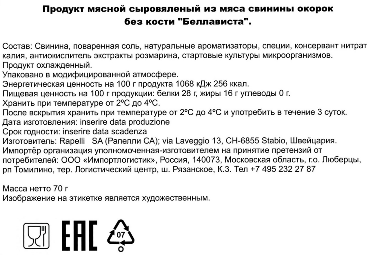 Окорок из свинины Rapelli Беллависта бескостный сыровяленый, 70г
