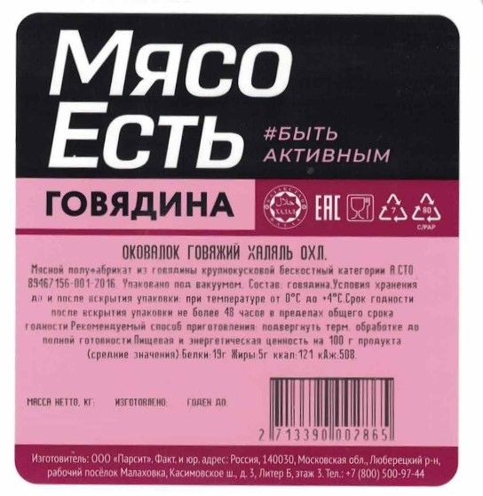Оковалок говяжий Мясо есть! Халяль охлажденный, ~5кг