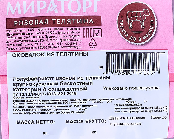 Оковалок из телятины Мираторг охлажденный, ~4кг