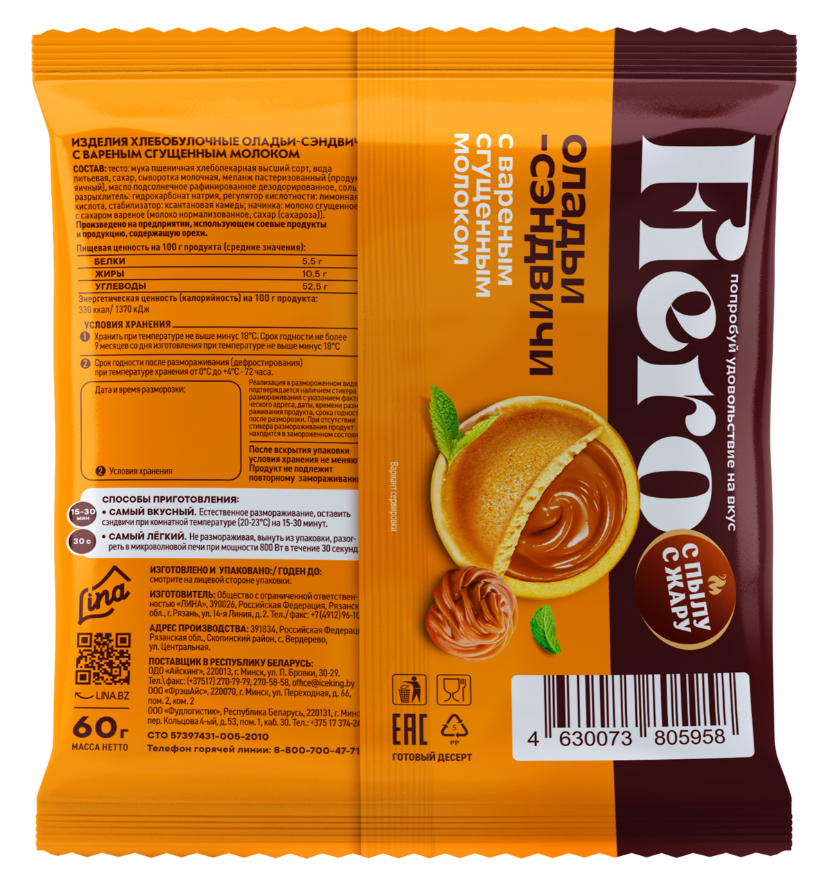 Оладьи-сэндвичи Fiero с вареной сгущенкой замороженные, 60г