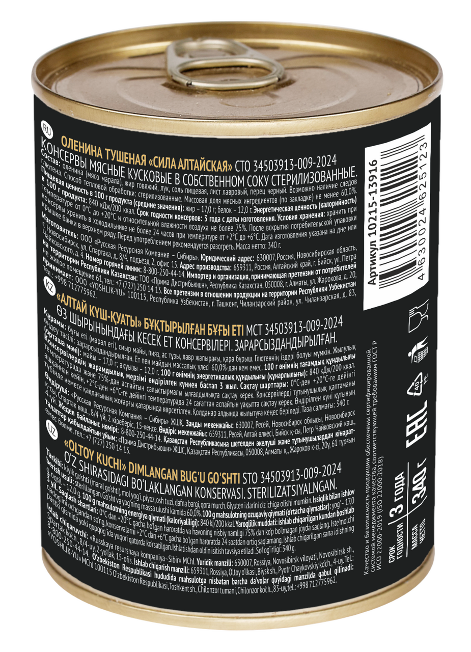 Оленина тушеная Сила Алтайская, 340г