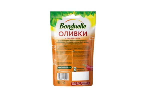 Если у вас в планах пикник, зажигательная вечеринка или встреча с друзьями, добавьте событию перчинки. Возьмите с собой новинку Бондюэль - оливки с перцем чили. Жгучая страсть перца оттеняется средиземноморской пикантностью тимьяна - необычное и весьма гурманское сочетание. Удобная, легкая вакуумная упаковка поместится даже в дамскую сумочку.