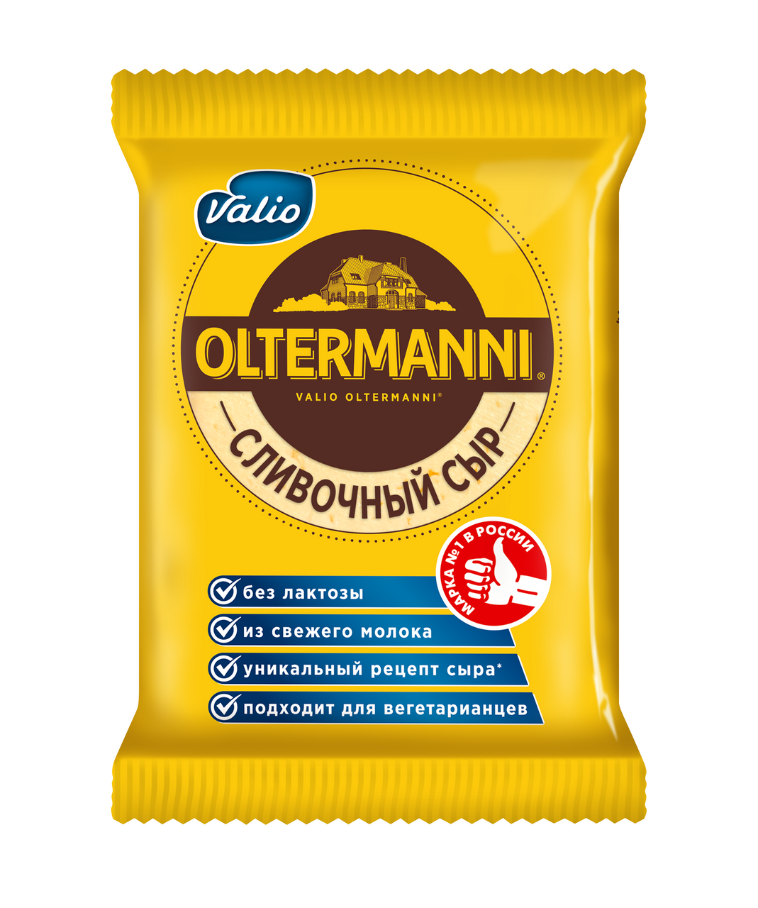 Сыр полутвердый Oltermanni Сливочный фасованный. Массовая доля жира в сухом веществе 45%.Сыр Valio Oltermanni – это уникальный продукт, рецептура которого была разработана совместно финскими специалистами и технологами предприятия-партнера, на основе опыта Valio в производстве сыров высочайшего качества. Сыр для новинки производится из свежего молока на заводе-партнере, аттестованном компанией Valio по единым требованиям и стандартам.Полюбившийся уже не одному поколению россиян сыр Valio Oltermanni относится к полутвердому типу сыров, имеет светло-желтый цвет, умеренно твердую текстуру с кружевом из неровных трещинок и глазков. Oltermanni традиционно обладает приятным нежным сливочным вкусом. Он не содержит заменителей молочного жира красителей, ароматизаторов и ГМО, изготавливается с использованием микробиологического фермента (неживотного происхождения), а значит подходит для питания вегетарианцев.