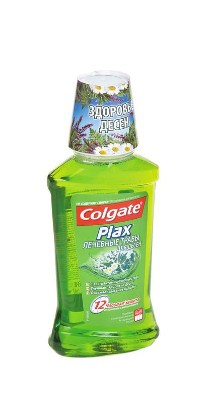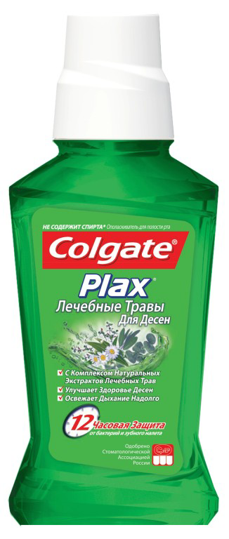 Ополаскиватель Colgate Plax Лечебные травы для десен содержит уникальный сбор экстрактов лечебных трав: Ромашка – противовоспалительный, заживляющий эффект;Шалфей – противовоспалительный эффект;Мирра – кровоостанавливающий эффект;Эвкалипт – укрепляющий десны эффект.