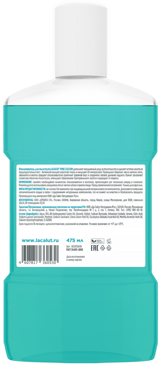 Ополаскиватель для полости рта Lacalut Pure Calcium, 475мл
