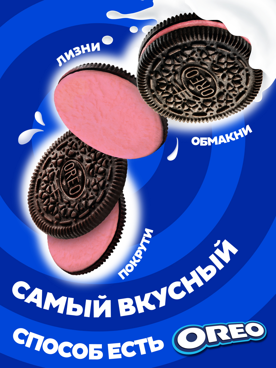 Участвует в конкурсе: Выиграйте кофемашину на сладкое! Совершите покупку товаров-участников на сумму от 1500₽ с 23 октября 2025г. по 14 января 2026г. и получите шанс выиграть кофемашину или другие сладкие призы! Чем больше покупок - тем больше шансов на победу! Подробнее об акции - https://cdn.metro-cc.ru/ru/mndlz_2025.pdf. Бисквитное печенье Oreo - хрустящее печенье с какао и нежной начинкой со вкусом клубники, которое любит весь мир. Взрослым и детям нравится забавный способ которым едят Oreo: Покрути, Лизни, Обмакни. Попробуйте, это весело и очень вкусно. Печенье Oreo - вкусный перекус, который отлично сочетается с молоком, чаем, кофе и соком, его удобно съесть на завтрак, взять с собой в дорогу, взять в школу, в университет, на работу или на прогулку. Печенье Oreo идеально подходит, чтобы сделать перерыв, побаловать себя, провести время с семьей, для просмотра фильма или сериала, для встречи с друзьями. Это отличный вариант сладкого угощения на праздник и на День рождения. В коробке шесть индивидуальных упаковок. Печенье с какао и начинкой с клубничным вкусом безусловно порадует и детей, и взрослых! Oreo - играй всегда.