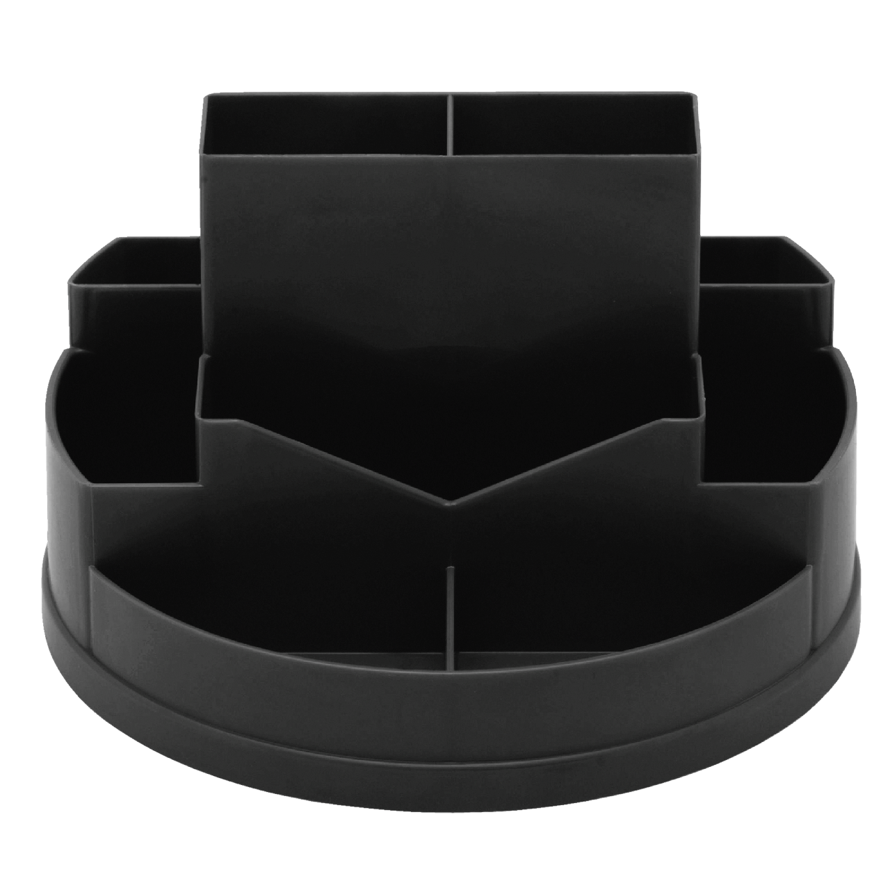 Органайзер для пишущих принадлежностей и мелких канцелярских предметов.Имеет 10 удобных отделений разной высоты и формы.Свободное вращение на 360 градусов.Без наполнения.