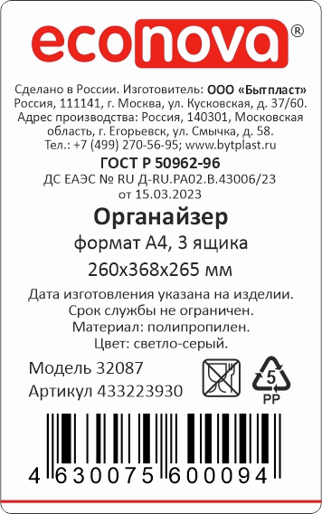 Органайзер Econova формата А4 станет удачным приобретением как для дома, так и для офиса. Органайзер подойдёт для организации бумаг и файлов на столе, игрушек, товаров для творчества и школы в детской, хозяйственных товаров в ванной, строительных материалов в гараже и др. Лёгкий органайзер удобен в транспортировке. Несколько органайзеров надёжно ставятся один на другой. Специальные стопоры не дадут ящикам выпасть, даже ��сли их сильно выдвинуть. Прозрачные стенки позволяют видеть, что хранится внутри каждого из них. Прочный органайзер сделан из безопасного высококачественного полипропилена.