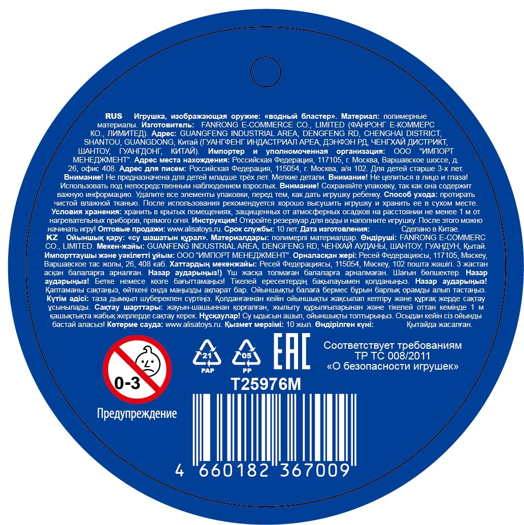 - Тип Набор для игры с водой