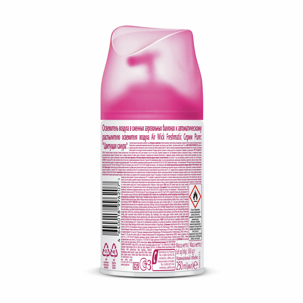 Освежитель воздуха аэрозольный AirWick Freshmatic Pure Цветущая сакура сменный баллон, 250мл