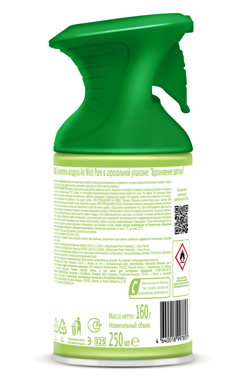 Спрей ароматический Air Wick Pure эффективно устраняет неприятные запахи и позволяет погрузиться в атмосферу приятных ароматов в 10 раз сильнее, чем обычные аэрозоли.