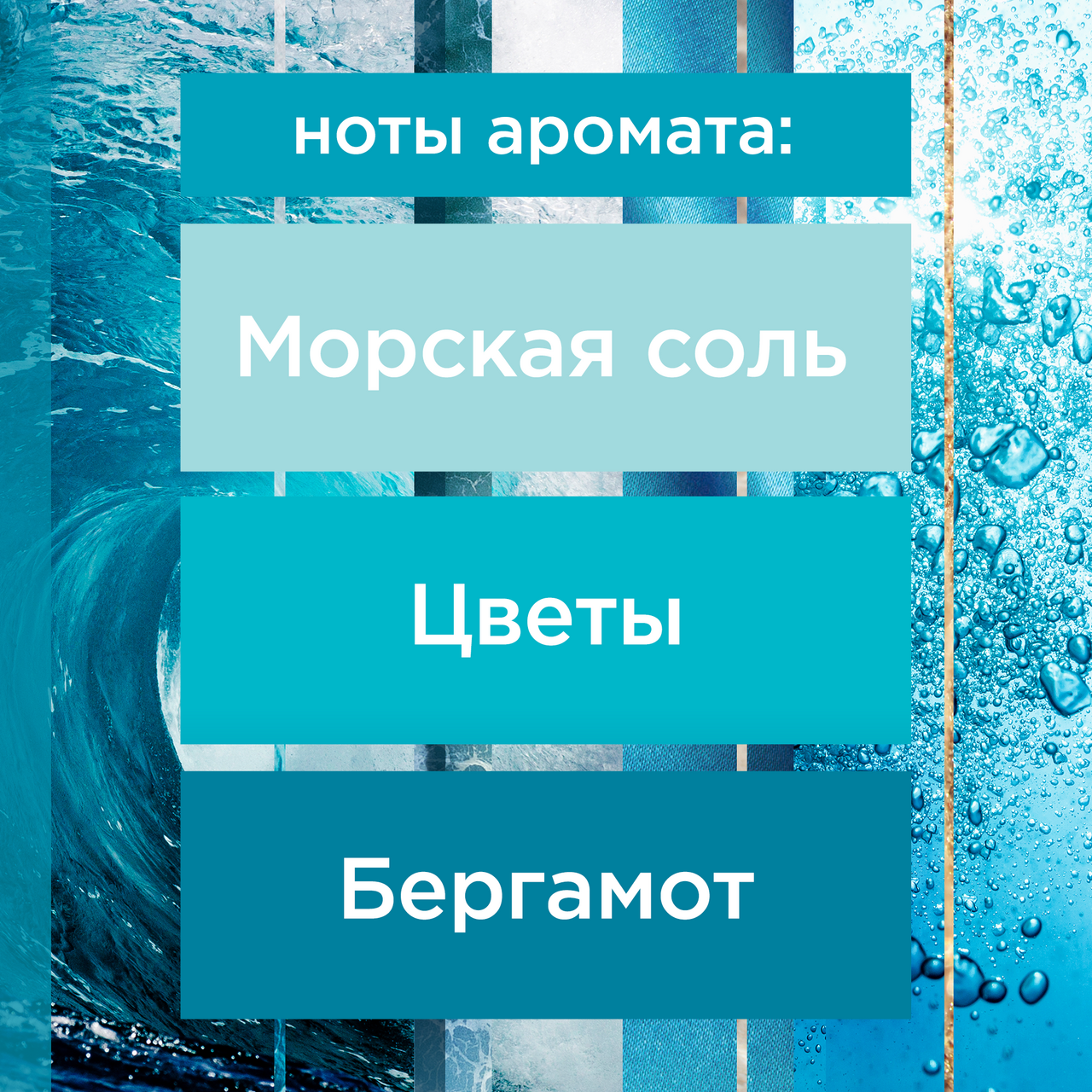 Ощутите прохладу брызг океана. Аромат морской волны в сочетании с нотками весенних цветов и благоухающего бергамота. Glade TrueScent Technology гарантирует безопасность и экспертную формулу своих аэрозолей для создания ощущения чистоты.