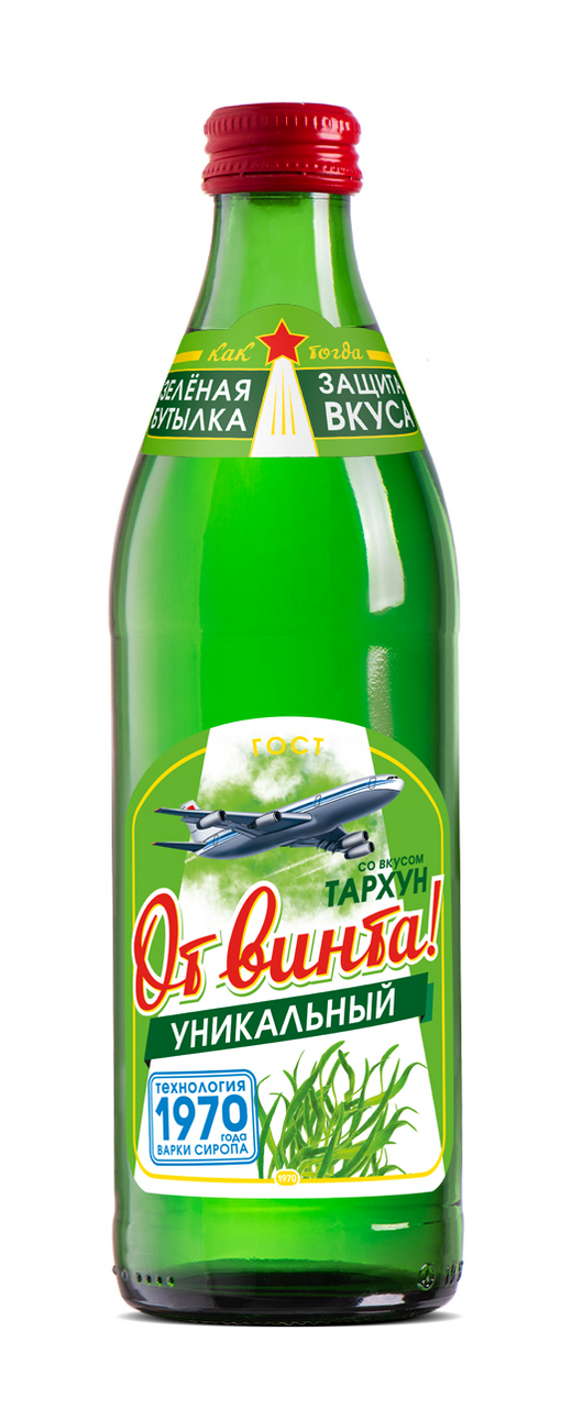 От винта! — приготовлен с использованием оригинальной технологии варки сахарного сиропа 1970 года! Легкое, позитивное, запоминающееся и веселое название, а так же удобный в использовании винтовой колпачок. Стеклянная бутылка зеленого цвета, защищает напиток от солнечных лучей!