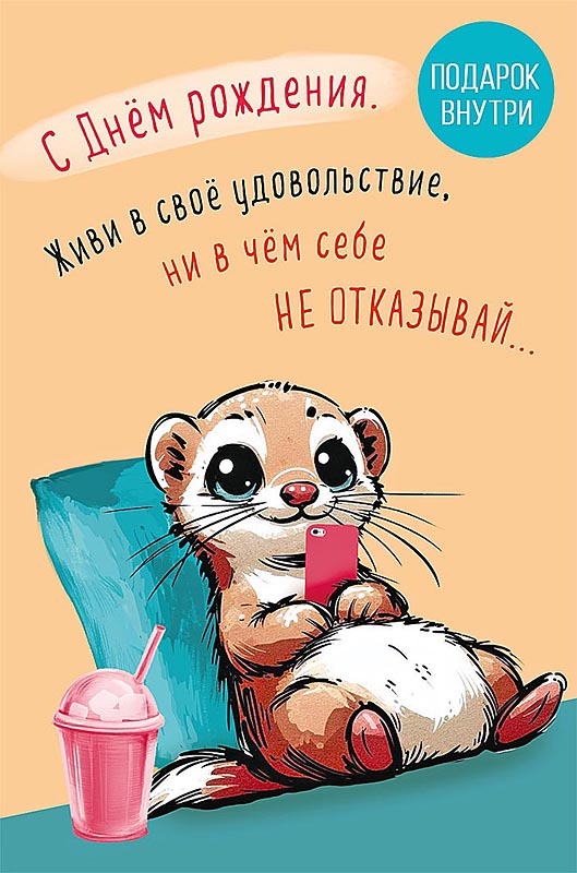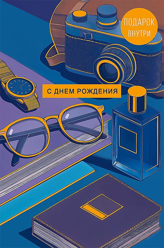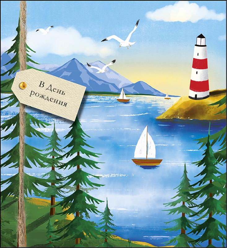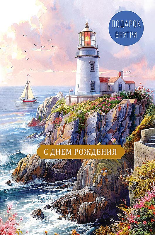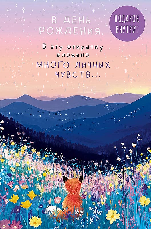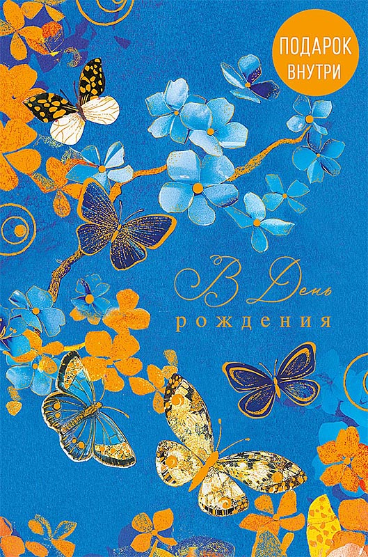 Открытка подарочная. Отделка: Деталь снаружи; Лак выборочный; Печать на обороте.