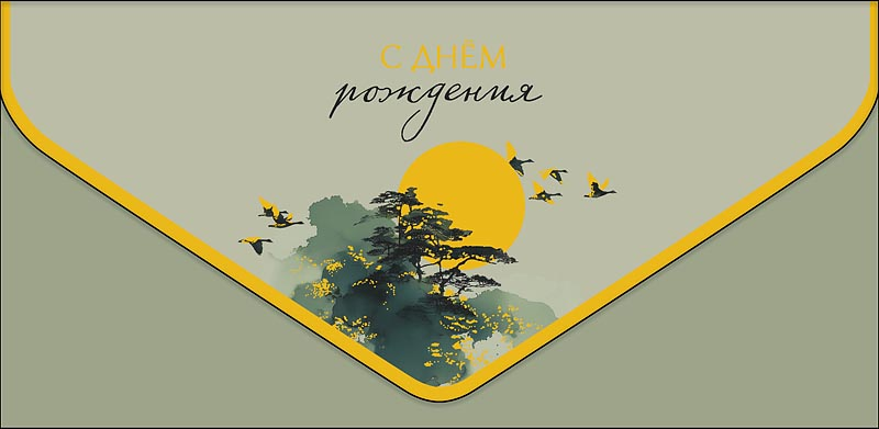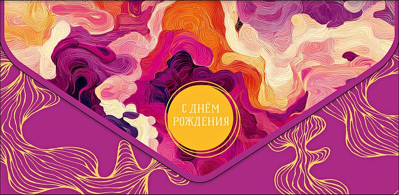 Конверты-открытки для денег выпускают с поздравлениями с Новым годом, Днем рождения, юбилеем, новосельем и другими праздниками. Конверт для денег с уникальным и стильным дизайном поможет подчеркнуть индивидуальность денежного подарка. Отделка: Вырубка; Деталь внутри; Лак выборочный; Склейка машинная.
