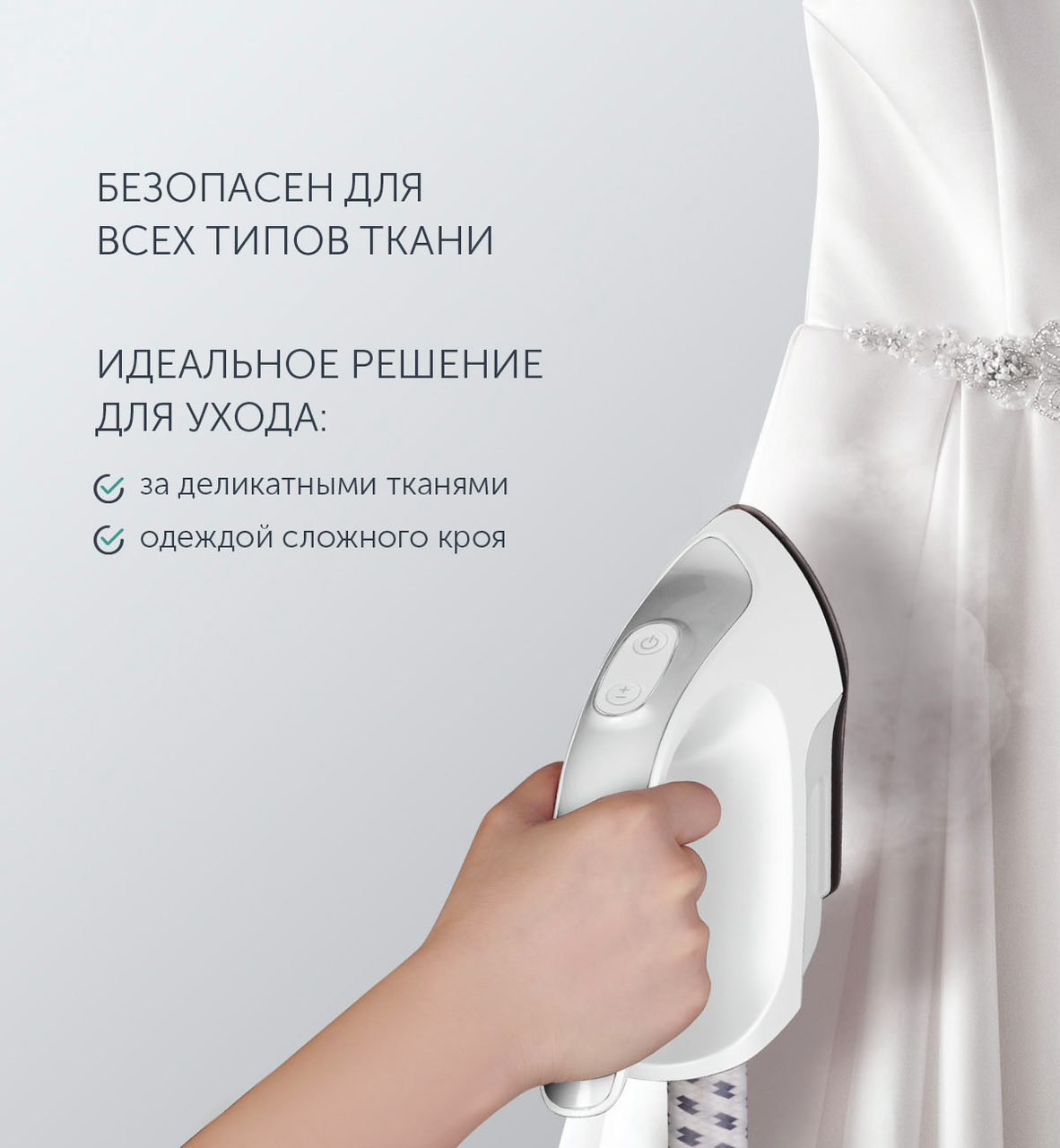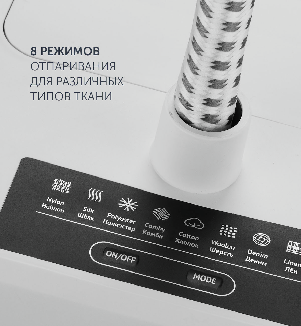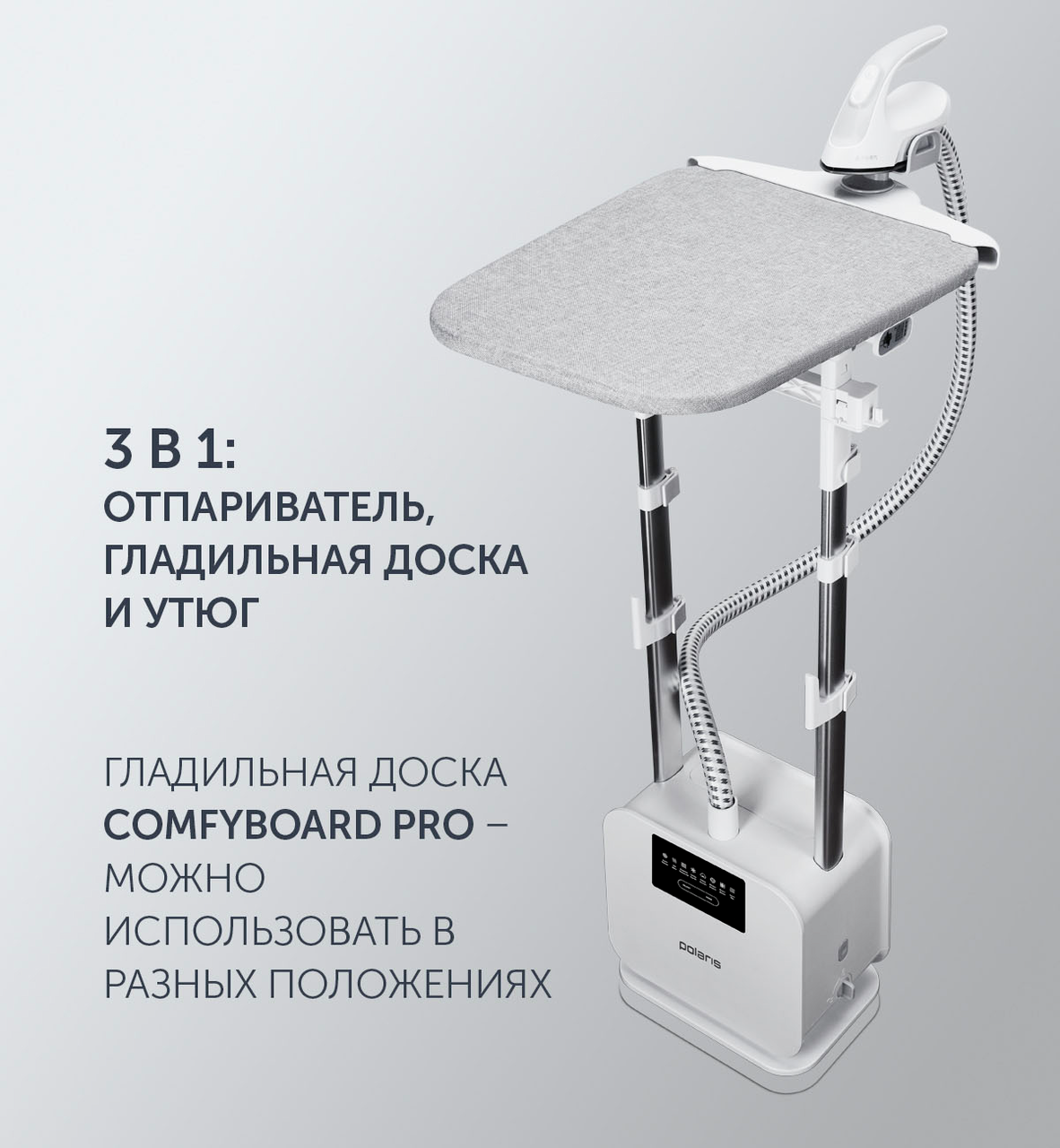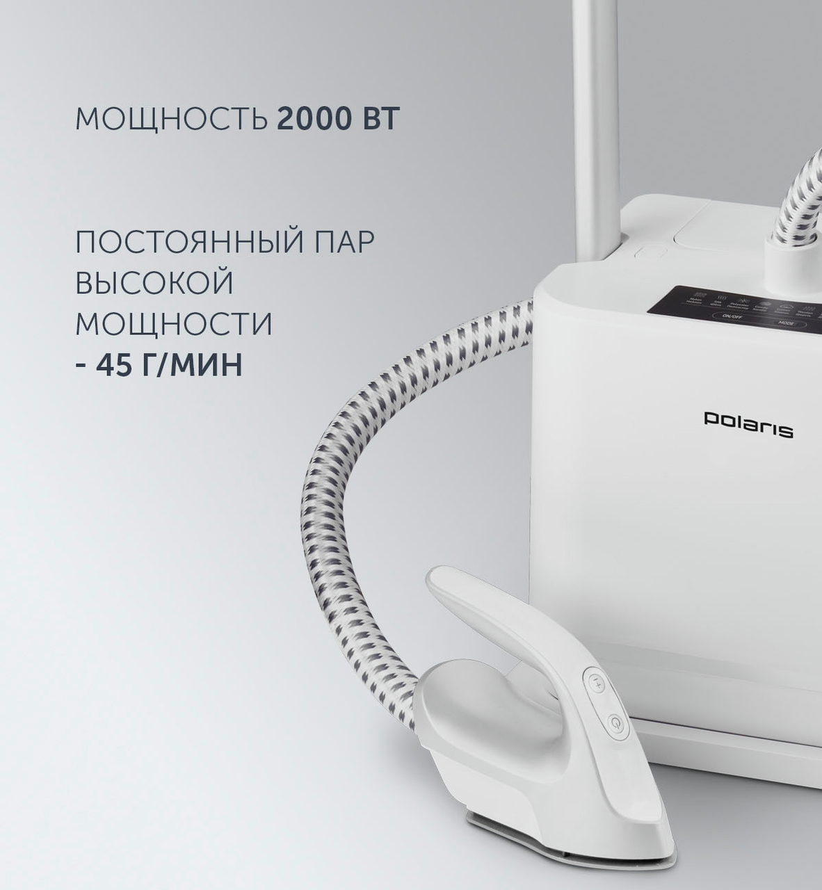 Отпариватель Polaris PGS 2090VA одновременно сочетает в себе функциональность отпаривателя, утюга и гладильной доски, обеспечивая правильный уход за вещами с деликатными тканями или сложным кроем. Данная модель оснащена 8 режимами отпаривания для разных типов тканей. Управление режимами легко выполняется с помощью кнопки на рукоятке распылителя.