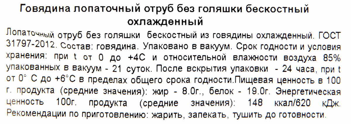 Отруб лопаточный Славянские дары говяжий без голяшки без кости охлажденный