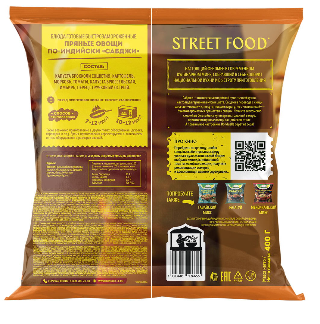 Смесь овощная Бондюэль Сабджи по-индийски замороженная, 400г