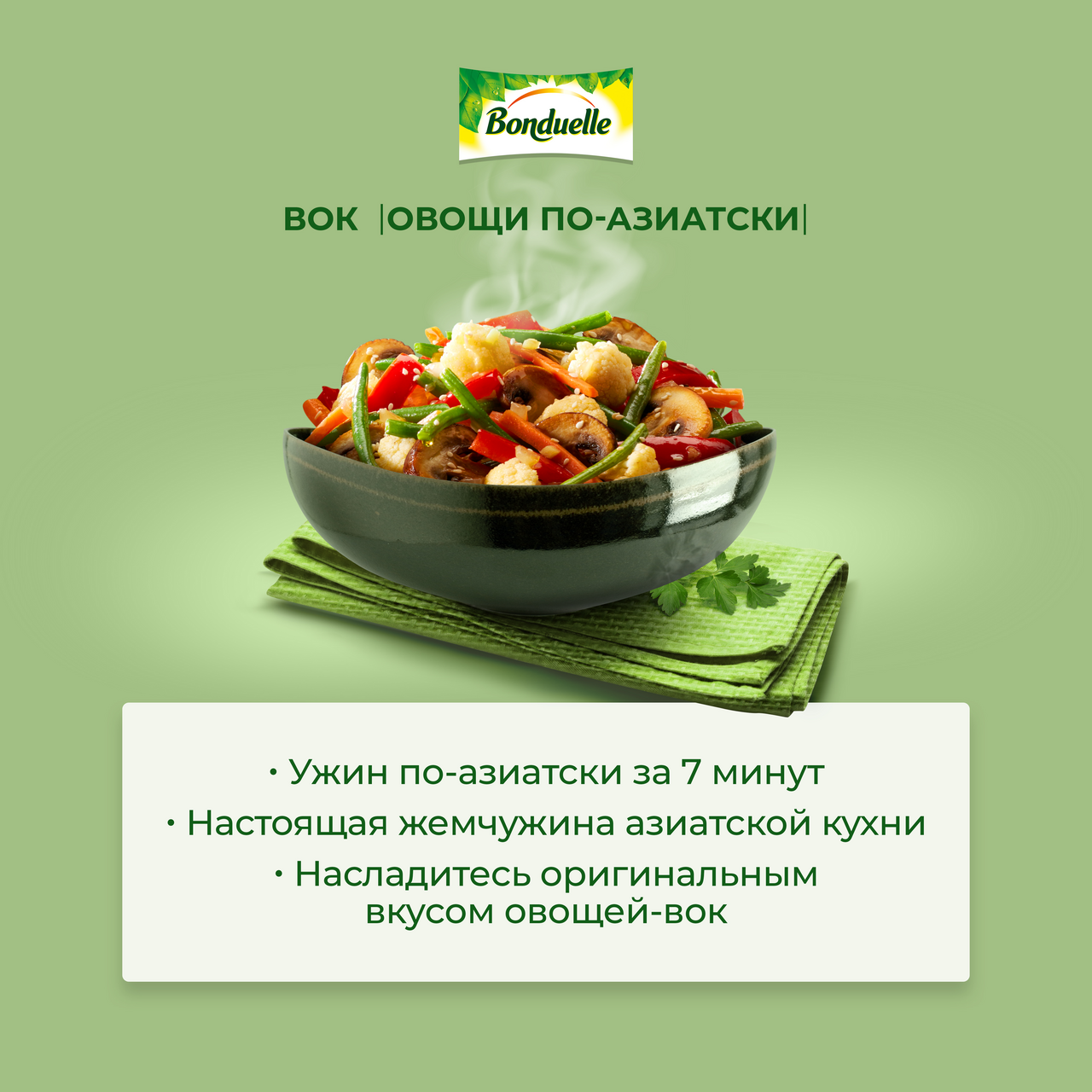 Вок – настоящая жемчужина азиатской кухни. Традиция готовить в глубокой сковороде-вок пришла из Азии и уже захватила весь мир. Такой способ приготовления сохраняет все полезные свойства овощей, и дарит блюду неповторимую текстуру – все ингредиенты остаются сочными, упругими и чуть хрустящими. Насладитесь оригинальным вкусом овощей-вок всего за 7 минут.