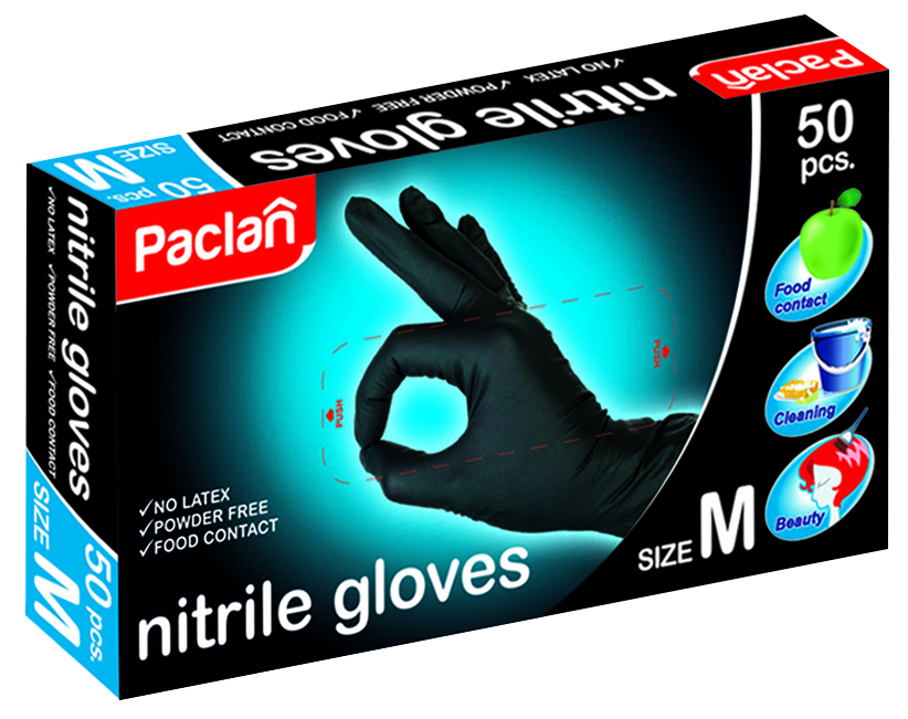 Paclan Перчатки хозяйственные нитриловые черные р-р М 25 пар / 50шт.