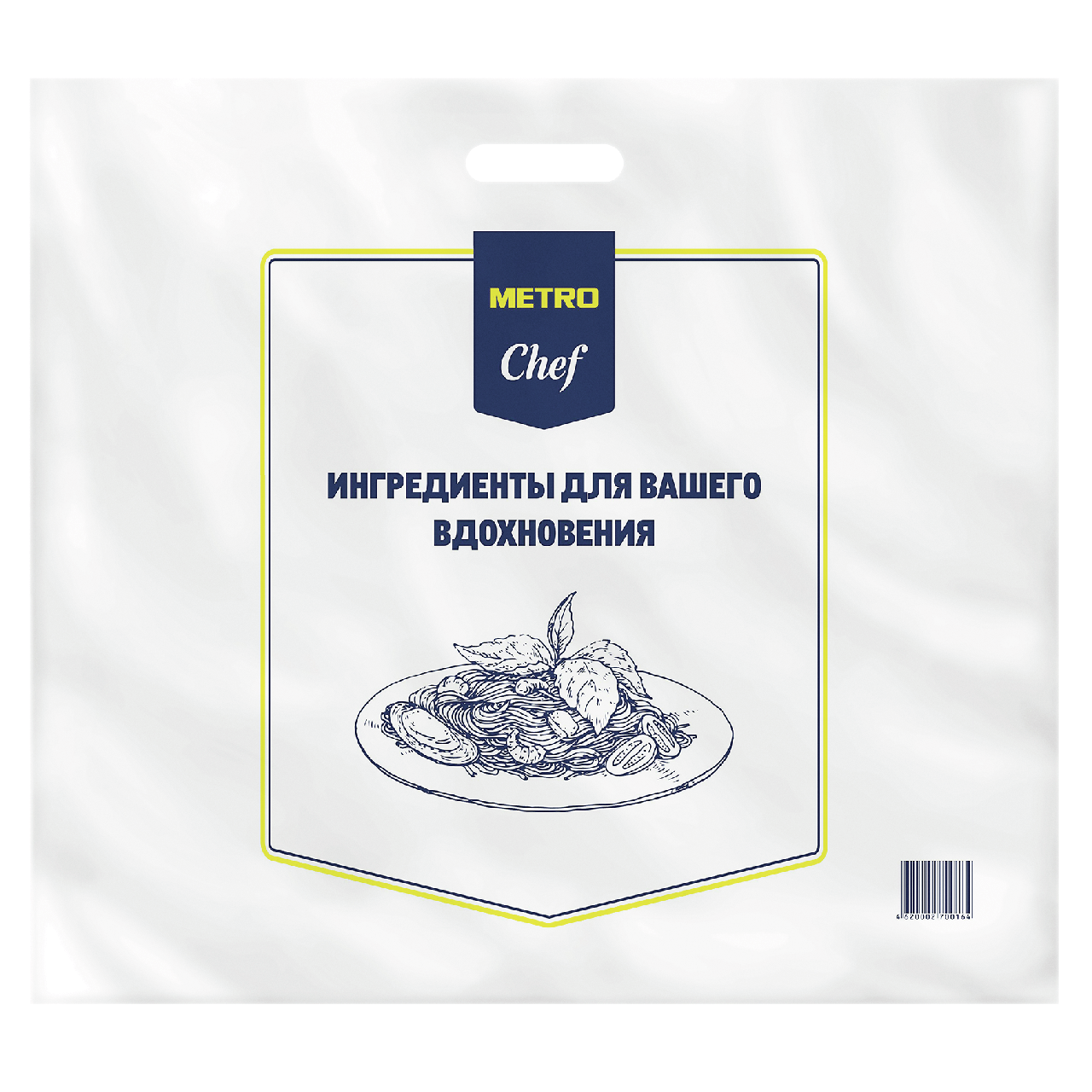 METRO Chef Пакет с вырубными ручками, 54 см x 60см. производятся из прочного материала, поэтому выдерживают нагрузку до 11 килограммов. Материал хорошо противостоит влаге и загрязнениям. Аксессуар имеет оптимальные размеры, поэтому вмещает практически любой пищевой и не только продукт. Прочный и надежный он обеспечивает защиту содержимого от повреждений, пыли и влаги. Пакеты предназначены для фасовки, хранения и перевозки различных продуктов (твердых, сыпучих, в том числе, теста, фруктов, сырных и колбасных нарезок). В одной упаковке поставляется 60 шт. пакетов. Важно избегать контакта изделия с огнем, нагревательными приборами и химическими веществами, а также воздействия ультрафиолета и высоких температур.
