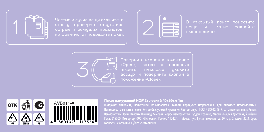 Пакет вакуумный Attribute Home плоский 40х60см уникальный продукт для хранения твоих вещей - вакуумный пакет. Этот многоразовый продукт станет незаменимым помощником в организации пространства в твоем шкафу, чемодане или на вешалке. С нашим вакуумным пакетом, ты сможешь получить больше места в шкафу или чемодане. Вакуумный пакет - настоящая находка для тех, кто часто путешествует или переезжает. Он обладает непромокаемыми и водонепроницаемыми свойствами, что значит - все твои вещи будут абсолютно безопасны и защищены от неприятных сюрпризов. Наш вакуумный пакет имеет прочный клапан и застежку-молнию, которые обеспечивают простую и надежную фиксацию. Твои вещи останутся надежно спрятанными и защищенными от пыли и грязи.