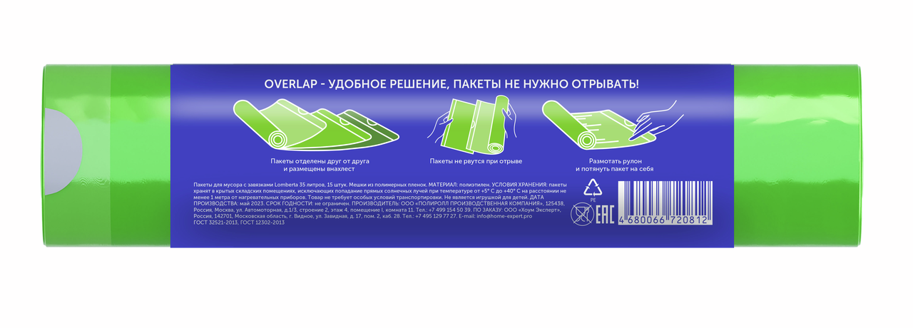 Пакеты для мусора Lomberta Overlap, 35 л x 15 шт. позволяют обойтись без перфорации и завернуть в ролик отделенные друг от друга мешки. Они уже разделены и намотаны внахлест, нужно просто размотать рулон и легко потянуть пакет на себя. Пакеты для мусора Lomberta — это высококачественные изделия из полиэтилена высокого давления. Специальный состав сырья обеспечивает хорошую эластичность и предотвращают разрыв мешков. Они легко завязываются. Такие мешки пригодятся на любой кухне.