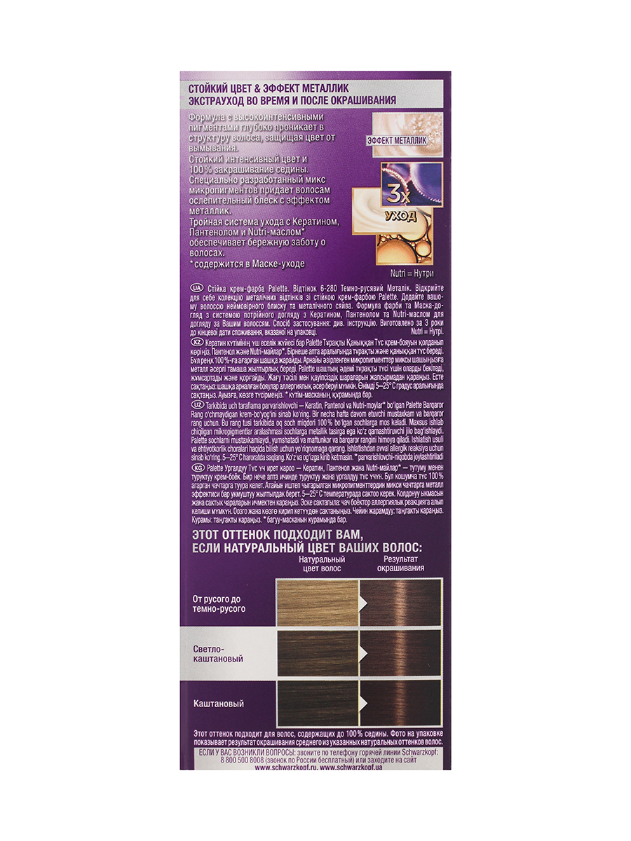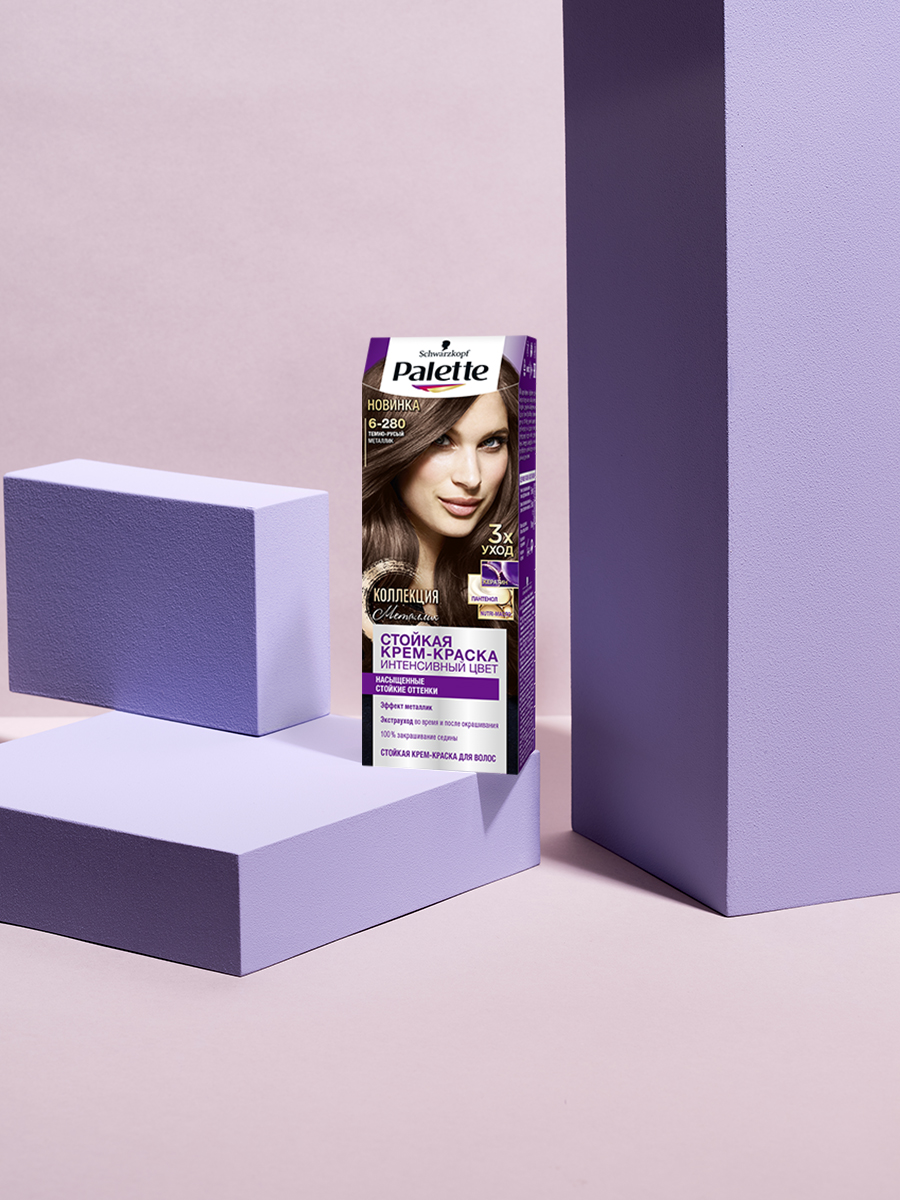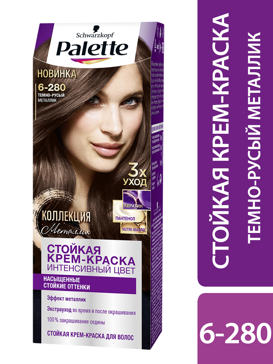 Крем-краска для волос Палетт Интенсивный цвет 6-280 Темно-русый металлик, 110мл
