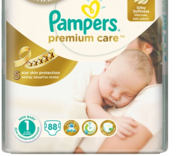 Подгузники PAMPERS Premium care newborn 1 (2-5кг), 88шт