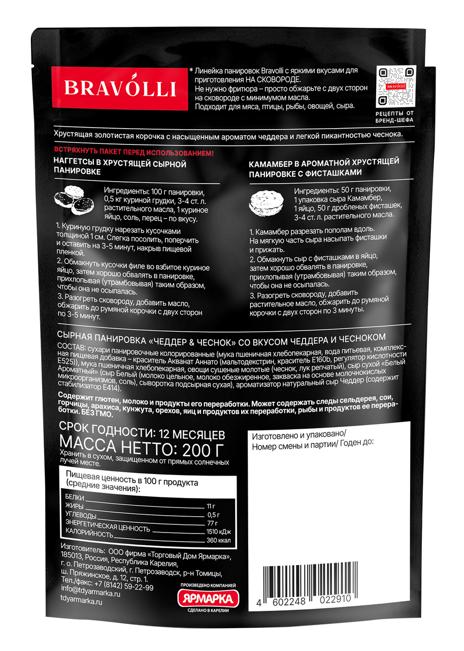 Панировка Bravolli! сырная чеддер и чеснок, 200г