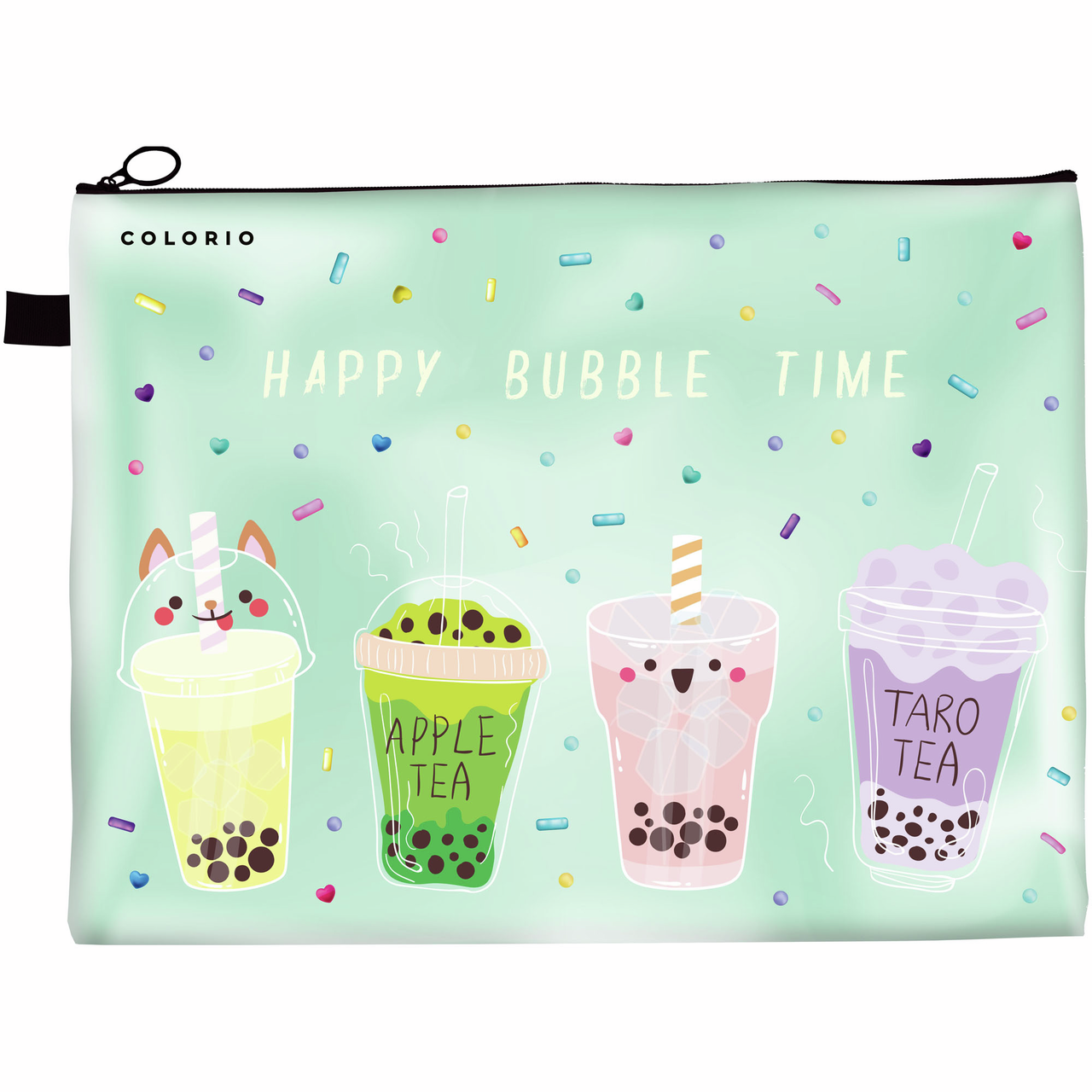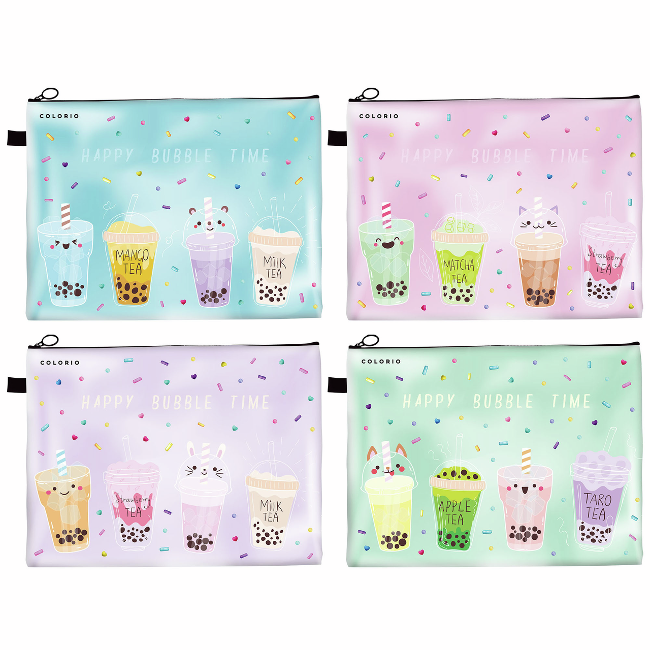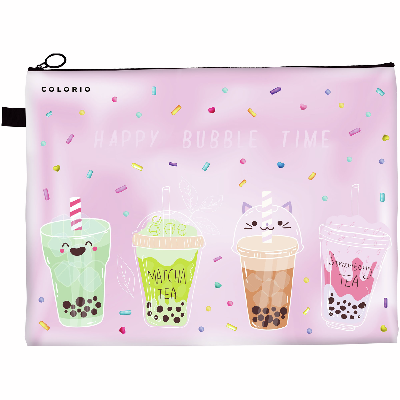 COJB-FC1-1018P Папка для тетрадей А4, одно отделение на молнии, выполнена из прозрачного цветного ПВХ, в ассортименте. Bubble time. Размер 37 х 27 х 0,3 см. Colorio.