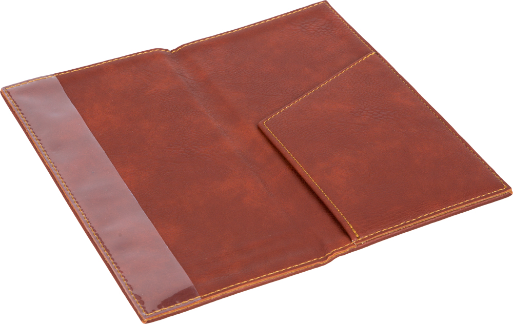 Папка для счета коричневая из искусственной кожи с декоративной отстрочкой для использования в барах, ресторанах, кафе. Цвет: коричневый. На обложку можно нанести логотип (тиснение) методом вдавливания.