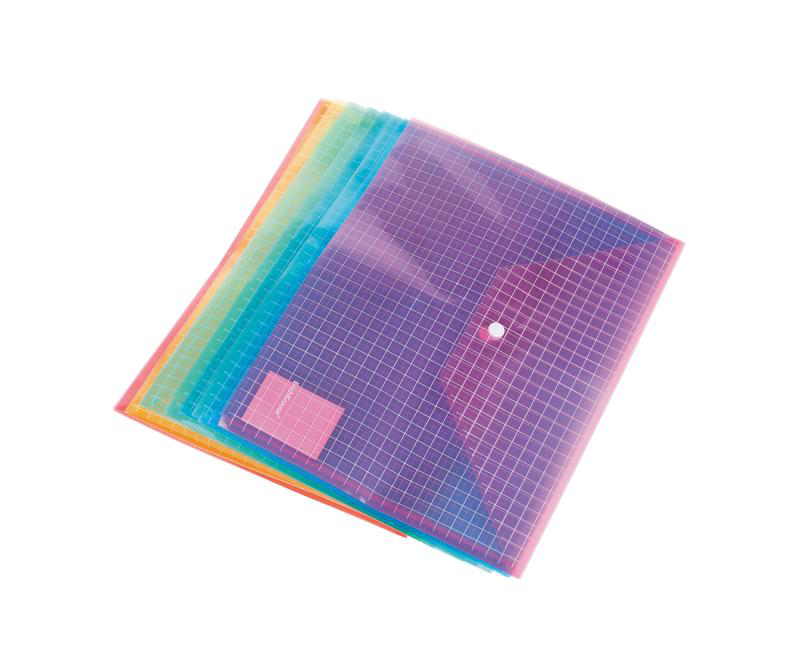 Папка-конверт Erich Krause на кнопке А4 полупрозрачная цветная 140мкм, 12 шт