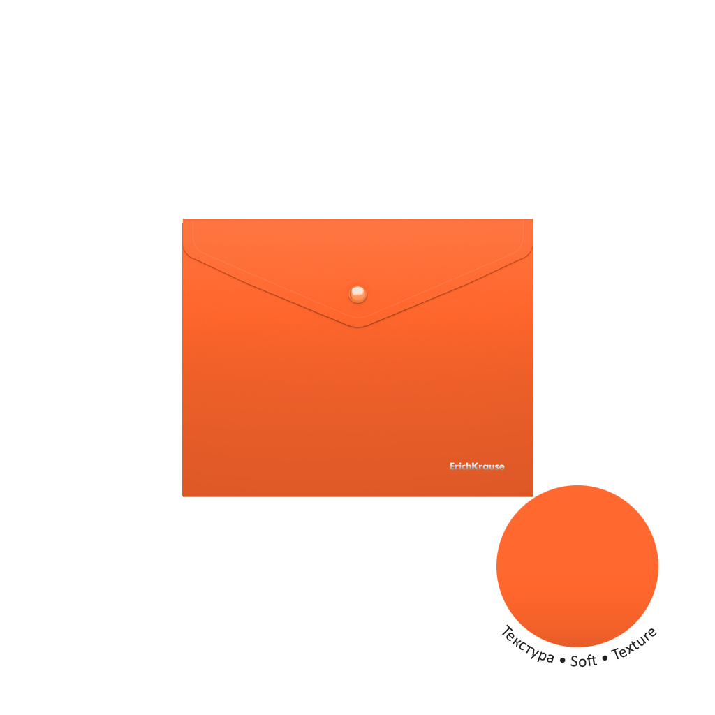 Папка-конверт Erich Krause Soft Caribbean на кнопке А5 из высококачественного непрозрачного пластика с текстурой поверхности "софт-тач" на которой не видно отпечатков пальцев и мелких царапин. Предназначена для хранения и транспортировки небольшого количества документов. Цвет папки - ассорти: маджента, оранжевый, фиолетовый. Надежная застежка-кнопка обеспечивает быстрый доступ к документам.