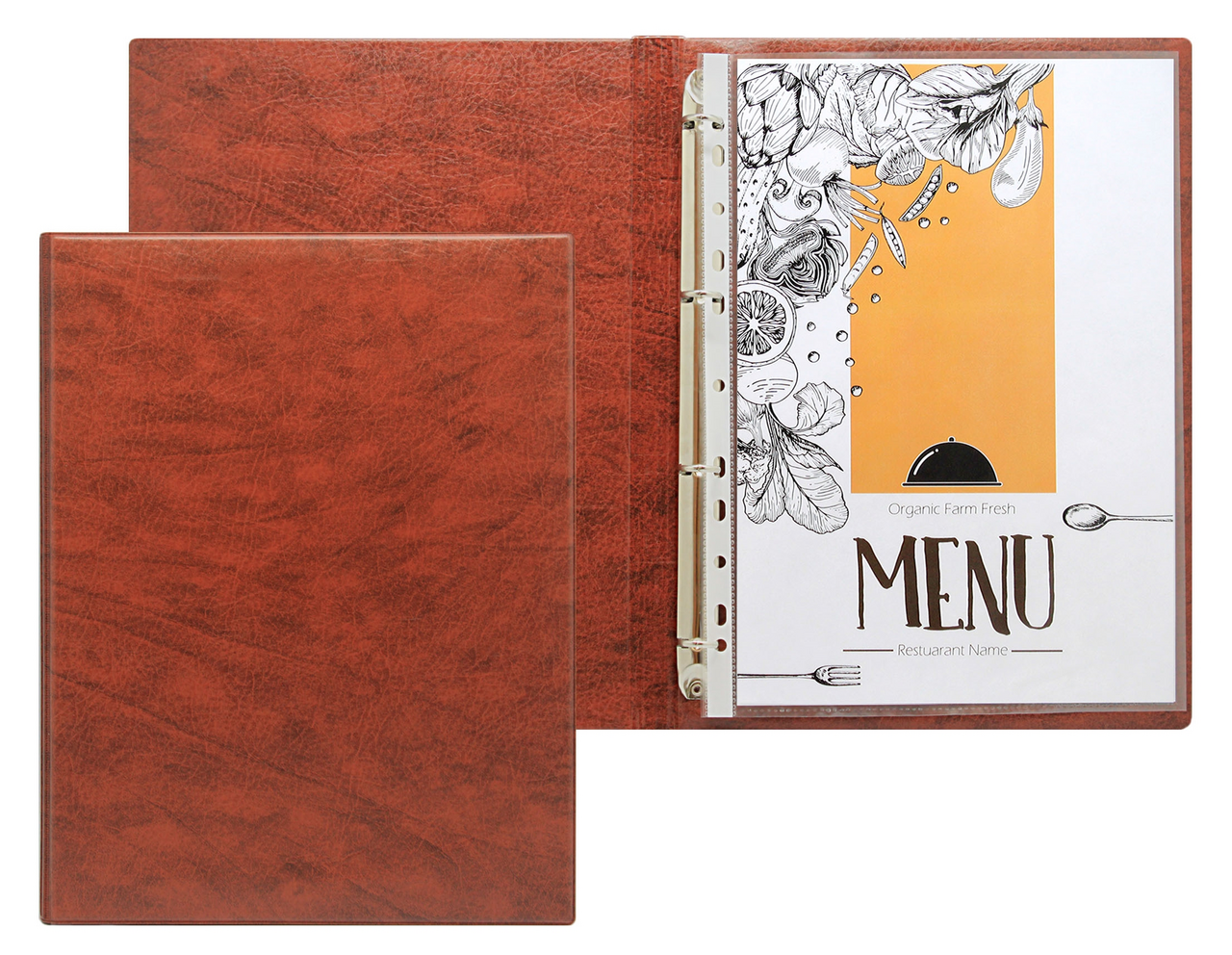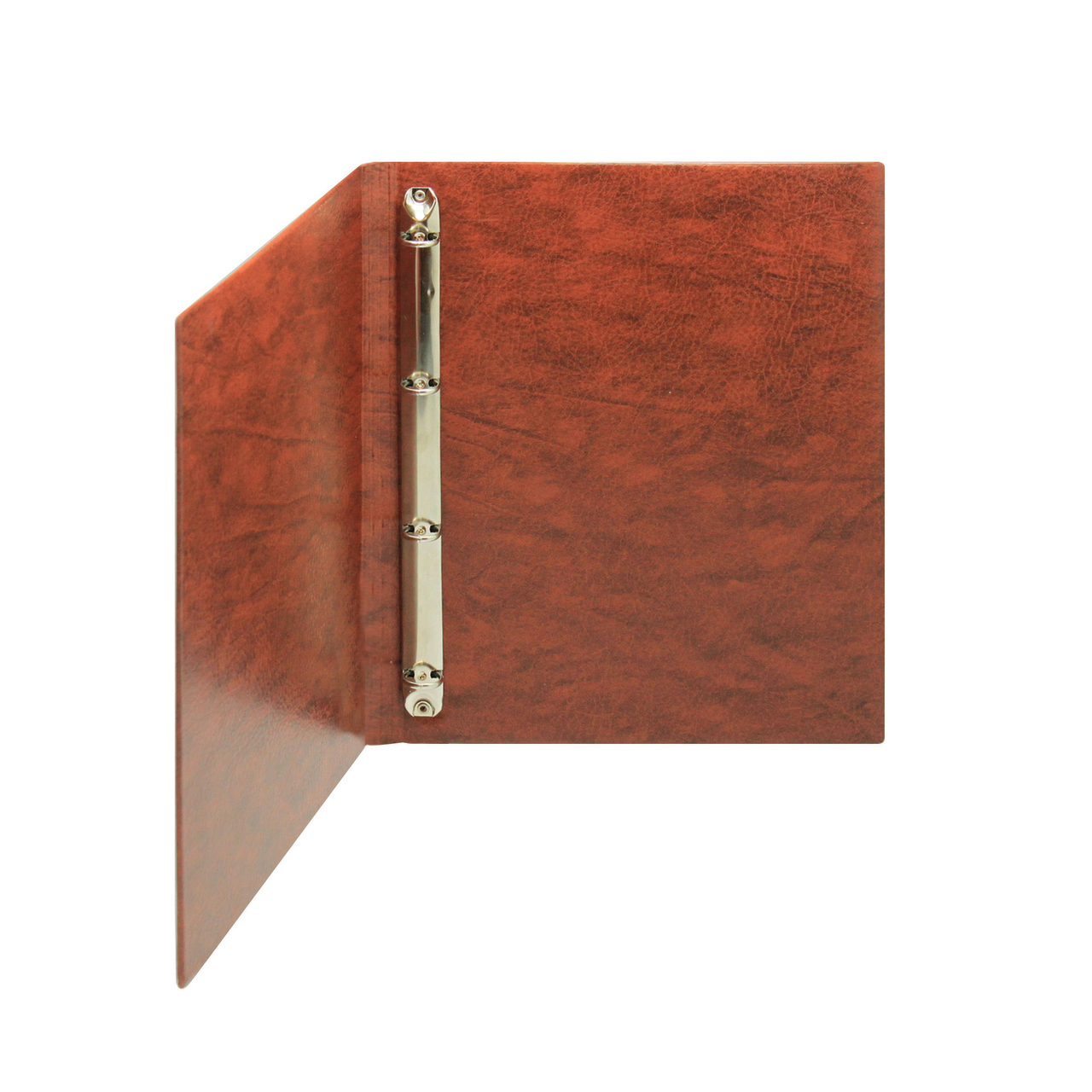 Адресная папка формата А4 коричневого цвета. Материал обложки и внутренней отделки: ПВХ. Предназначена для использования в отелях, ресторанах, кафе. Папка для файлов с кольцевым механизмом на 4 кольца. Размер в сложенном виде: 250х322 мм. Корешок округлой формы шириной 2,5 см, диаметр кольца 1,2 см, под стандартные отверстия.