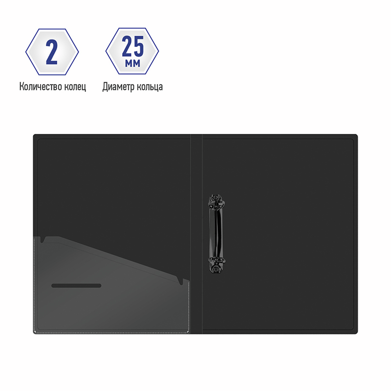 Изготовлена из плотного фактурного пластика толщиной 1 мм. Яркие насыщенные цвета. Черный цвет внутренней поверхности. Черный цвет колец. Специальная D форма колец помогает удобно и ровно хранить документы, которые могут быть выровнены по левому краю, благодаря боковой вертикальной стенке кольца. Дополнительный внутренний карман для удобного хранения мелочей. Индивидуальная упаковка в пакет.