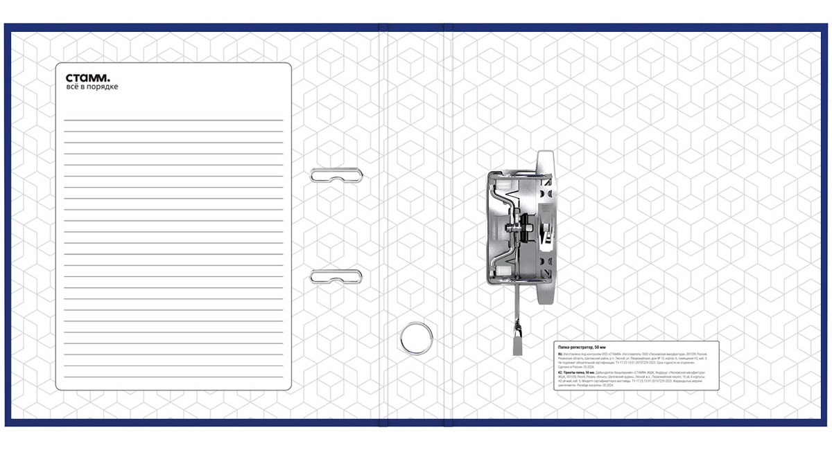 Папка-регистратор Стамм серии Стандарт формата А4 с арочным механизмом идеальна для создания архива и экономии офисного пространства. Папка вмещает до 450 листов. Размер папки - 320x290x50мм. Ориентация папки - вертикальная. Ширина корешка составляет 50мм.