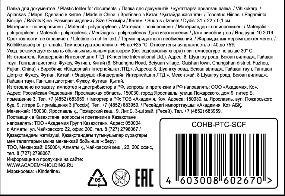 - Высота упаковки, см 0.1
