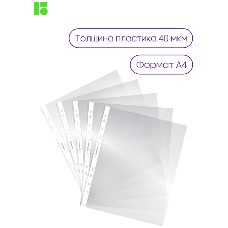 Папка-вкладыш Berlingo с перфорацией глянцевая А4 40мкм, 100шт
