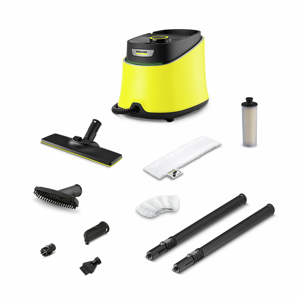 Пароочиститель Karcher Deluxe Easyfix SC 3 — прибор, незаменимый для дома, где есть животные и дети. Очищая различные твердые поверхности, устройство уничтожает до 99,99% вирусов и распространенных в быту бактерий. Пароочиститель всего за 30 секунд готов к работе. Он легкий и простой в обращении. А все насадки, кабель и шланг, что есть в комплекте, удобно хранить в специально предназначенном для этих целей отсеке. Чтобы прибор раньше време��и не вышел из строя, внутри него есть встроенный картридж для защиты от накипи. А чтобы не делать перерыва в работе, воду в устройство можно заливать прямо в процессе отпаривания. В наборе есть много практичных аксессуаров для удаления стойких загрязнений с кухонных плит, вытяжек, из швов керамической плитки и т. д. А насадка для пола EasyFix с шарниром, что также предусмотрена производителем в комплекте, облегчающим выполнение работ, и пластинчатой подошвой, гарантирующей превосходные результаты уборки. Микроволоконная салфетка для пола легко закрепляется на этой насадке при помощи липучки и быстро снимается без контакта с грязью. 2-ступенчатая регулировка подачи пара обеспечивает адаптацию к виду очищаемой поверхности и степени ее загрязненности.