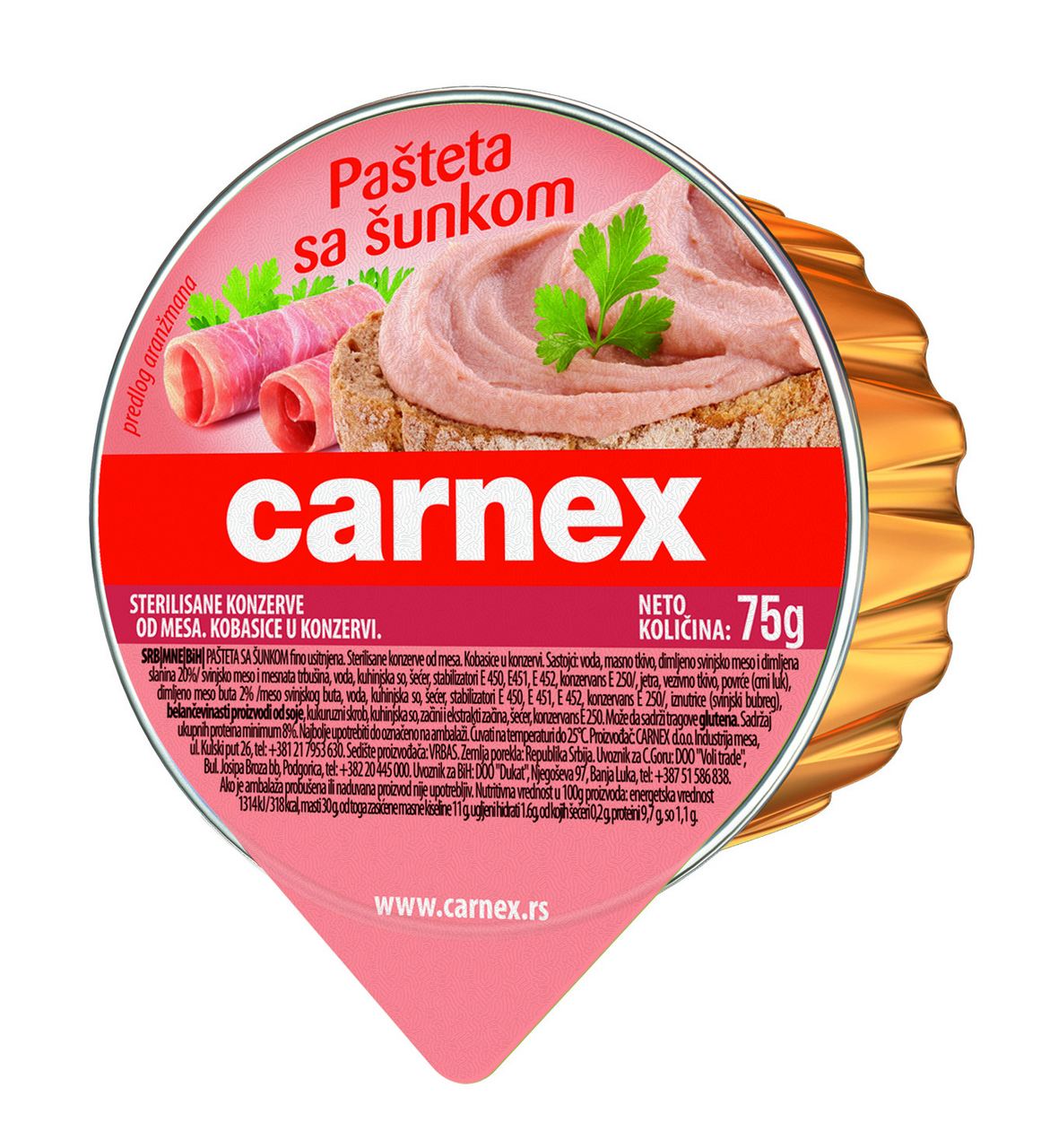 Паштет Carnex с ветчиной, 75г