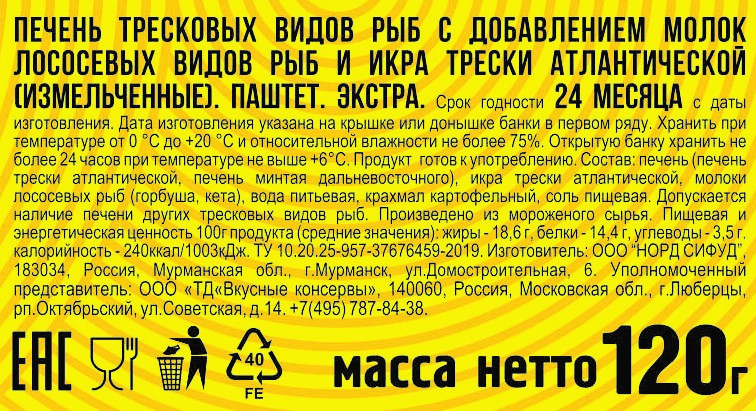 Паштет Вкусные консервы из печени и икры трески, 120г