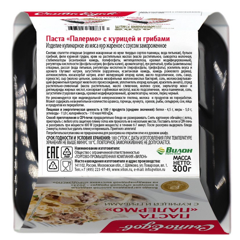 Паста Сытоедов Палермо с курицей и грибами замороженная, 300г